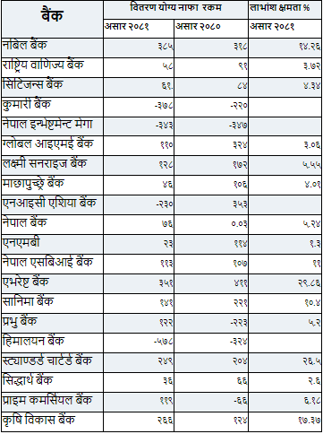 बाणिज्य बैंकहरूको नाफा ६४ अर्ब, लाभांश क्षमता कुनको कति?
